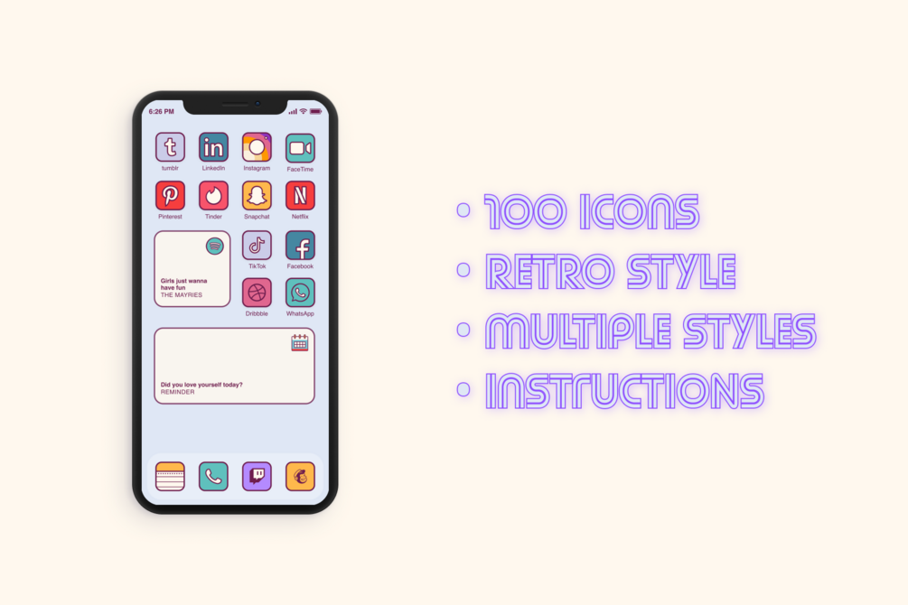 You'll get 100 retro icons, wallpapers & widgets!